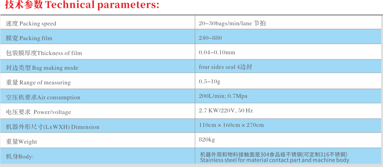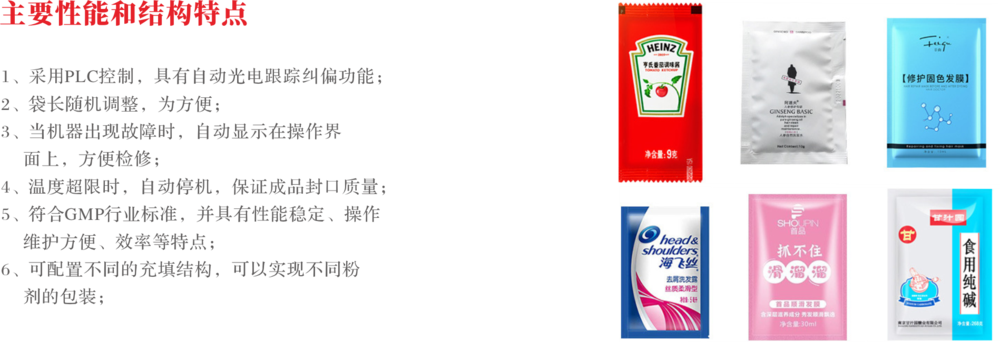6、可配置不同的充填结构,可以实现不同粉剂的包装;